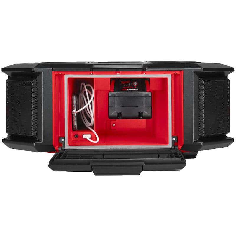 The Milwaukee M18PRCDAB+ DAB+ Radio and Charger features premium surround sound speakers with a 40W amplifier. Compatible with any Milwaukee Packout system item.