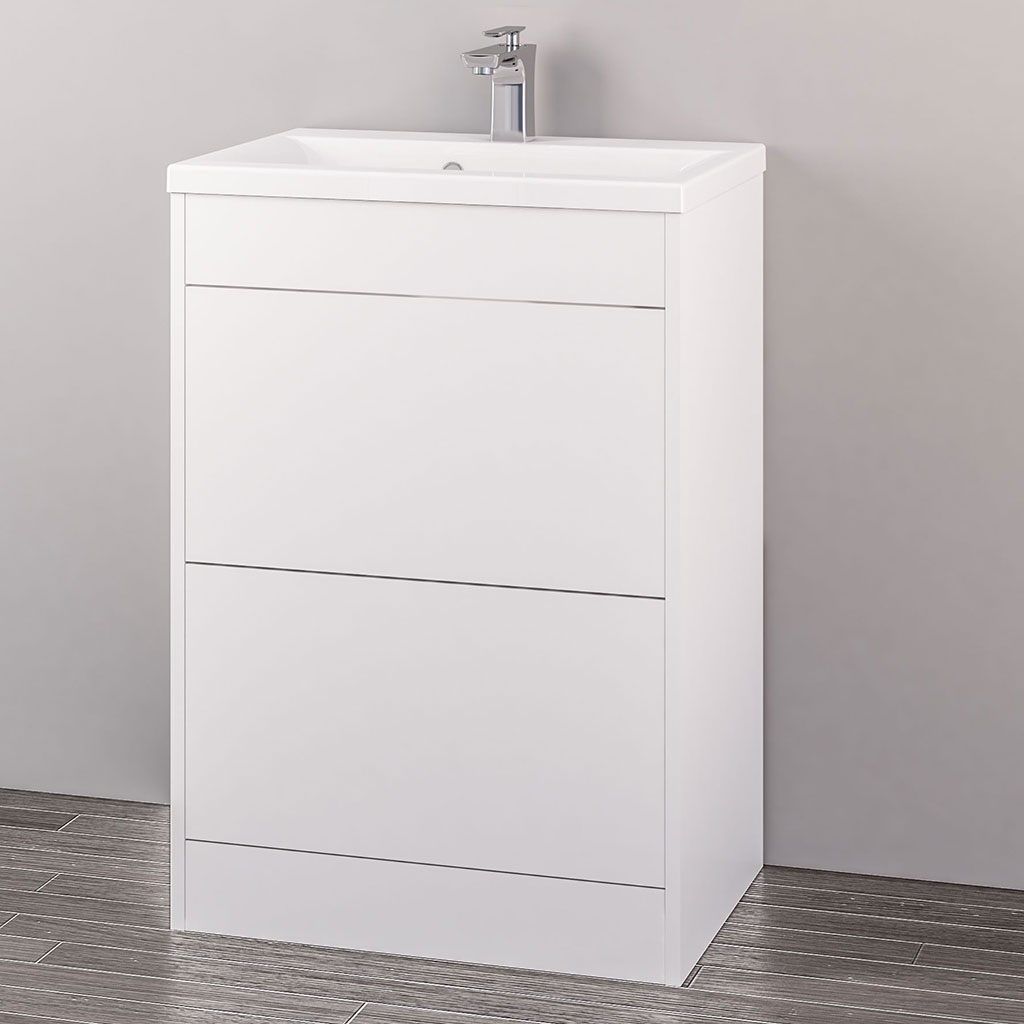 Oslo 58cm two Push Drawer Freestanding Unit In White. Oslo unit featuring a double push drawer mechanism for a sleek and contemporary look. Features: 58cm width. 2 soft-close push drawers. White.