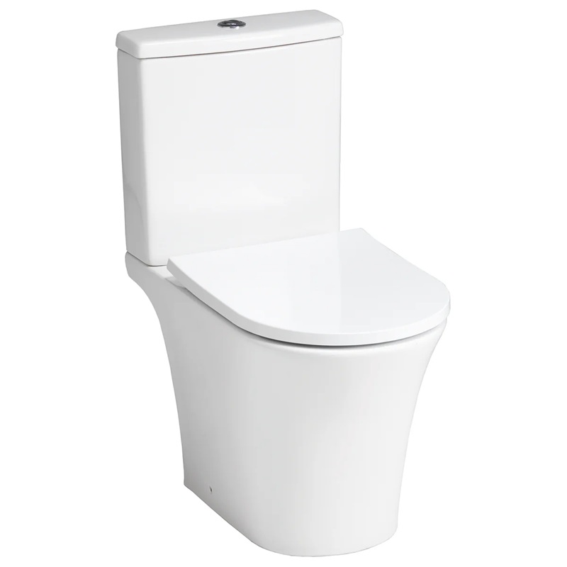 • White Ceramic Close Coupled Rimless Open Back Pan & Soft Close Seat