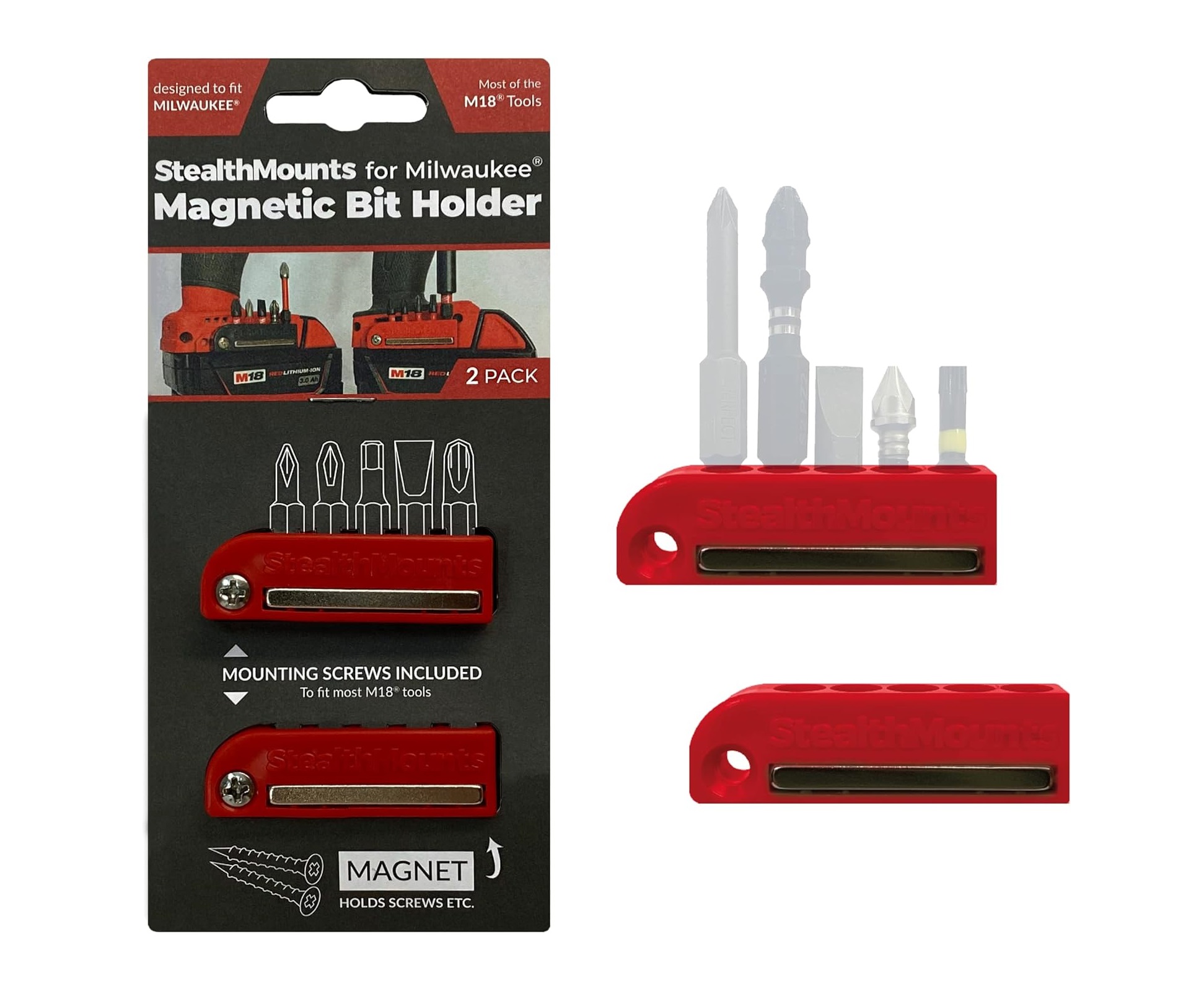 Stealthmounts BH-MW18-RED-2 Milwaukee RED M18 Bit Holder 2pc