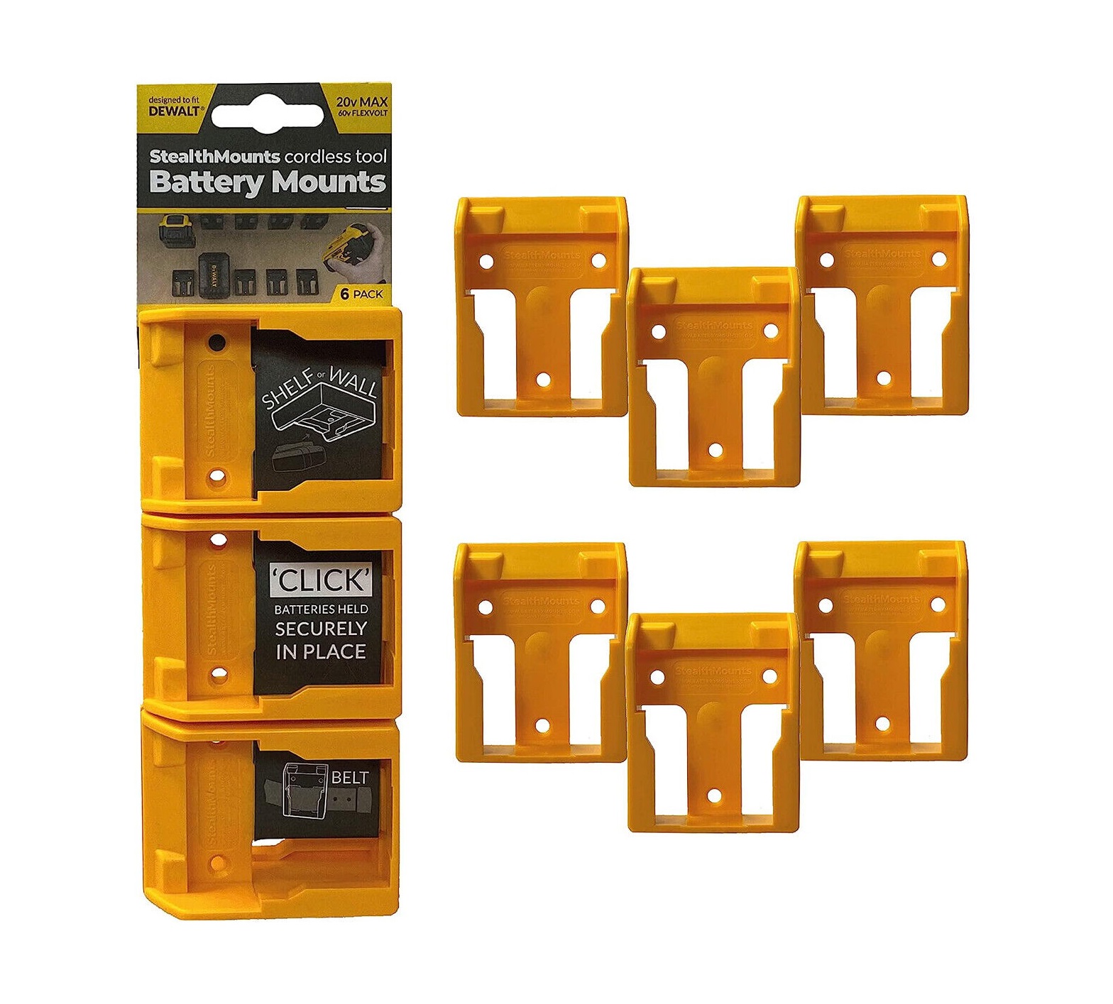 Stealthmounts BM-DW20-YLW-6 Dewalt YELLOW Battery Holder XR18v/54v 6pc