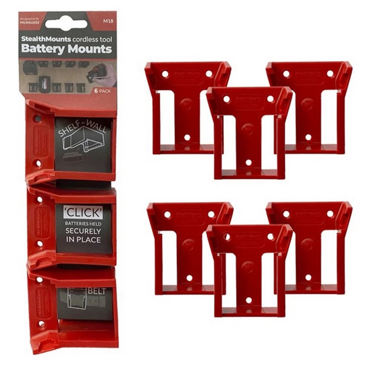 Stealthmounts BM-MW18-RED-6 Milwaukee RED M18 Battery Mount 6pc