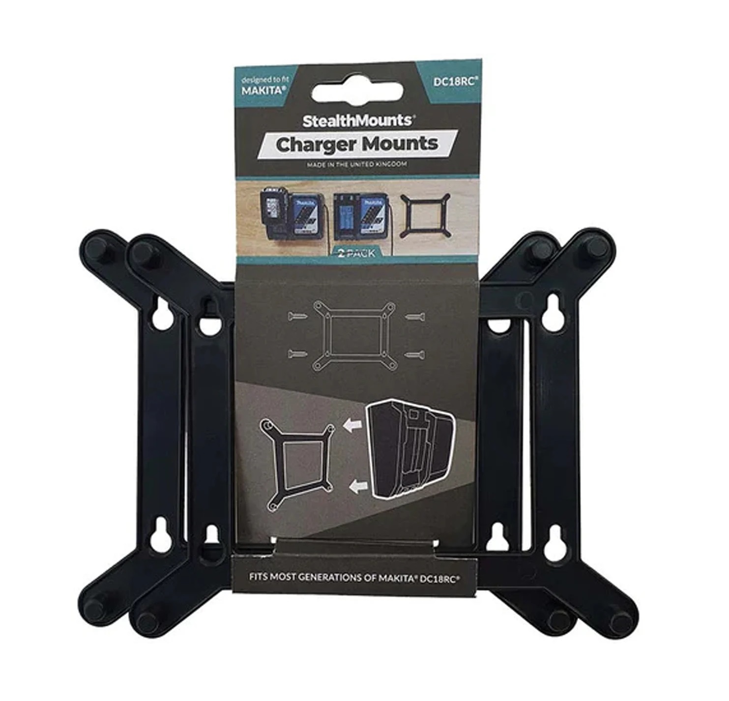 Stealthmounts CMC-MK-S Makita BLACK Single Charger Bracket DC18RC 2pc