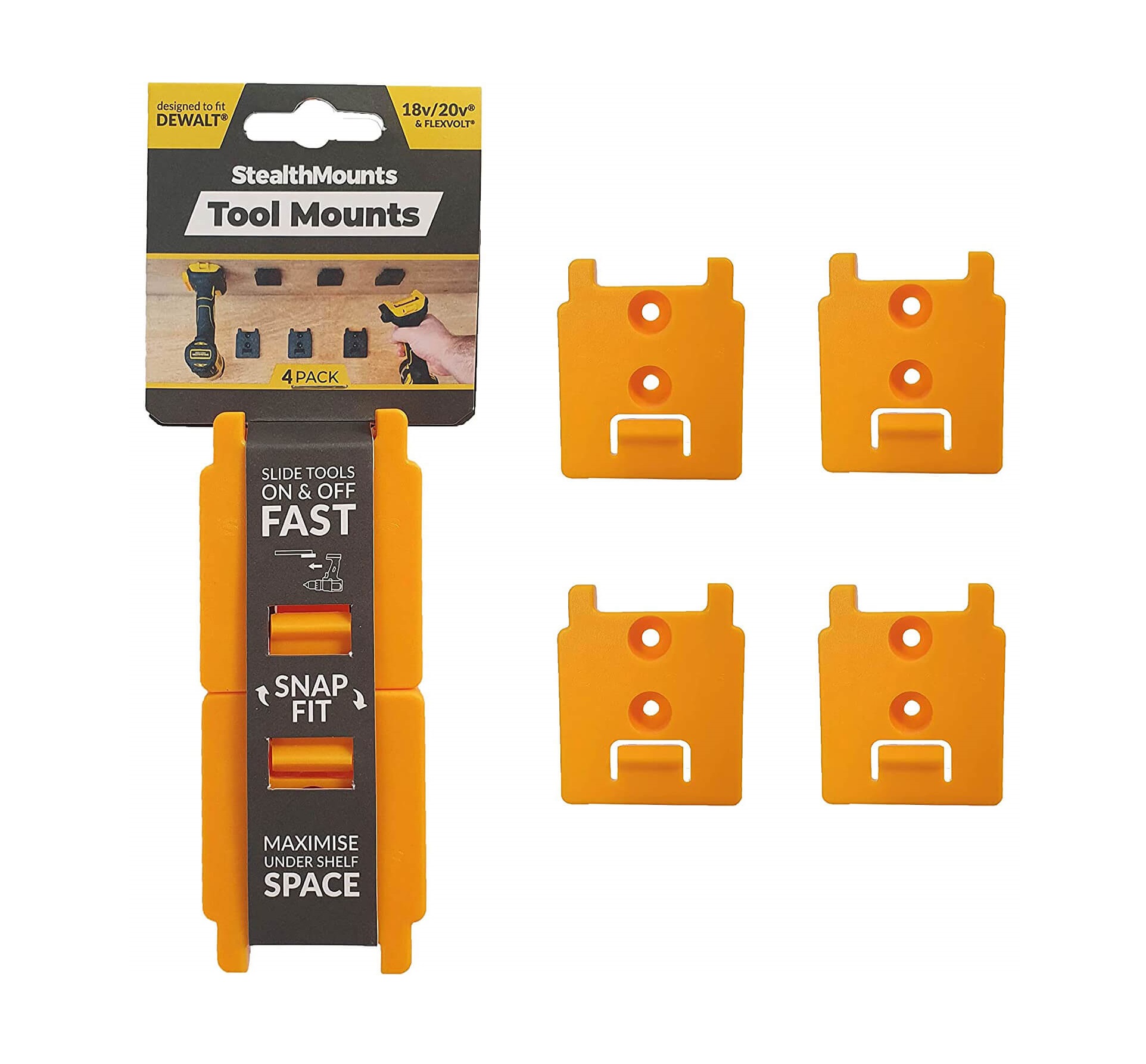 Stealthmounts TM-DW18-YLW-4LF Dewalt YELLOW 18v Tool Mounts 4pc