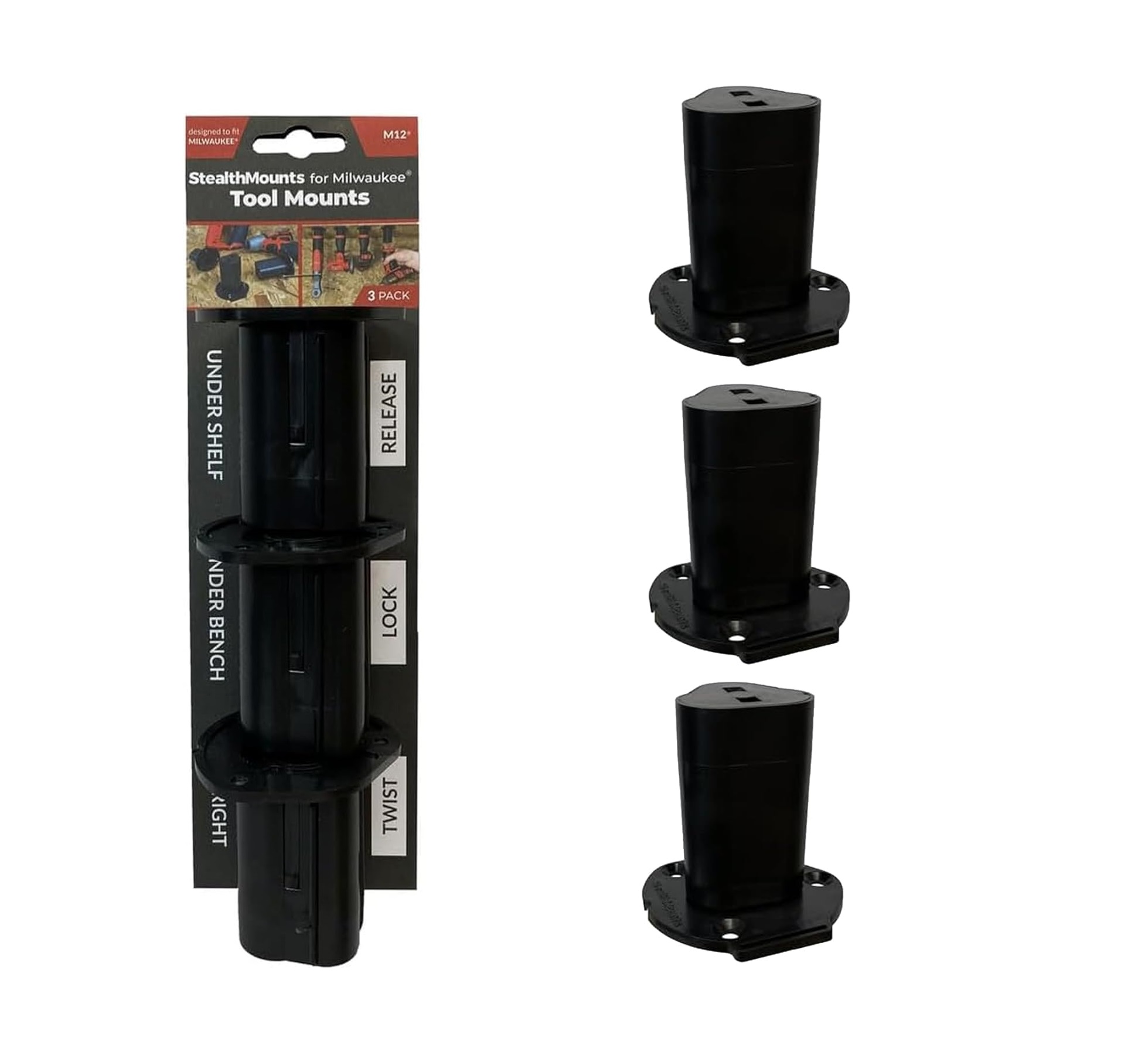 Stealthmounts - Milwaukee BLACK 12v Tool Mounts 3pc- TM-MW12-BLK-3