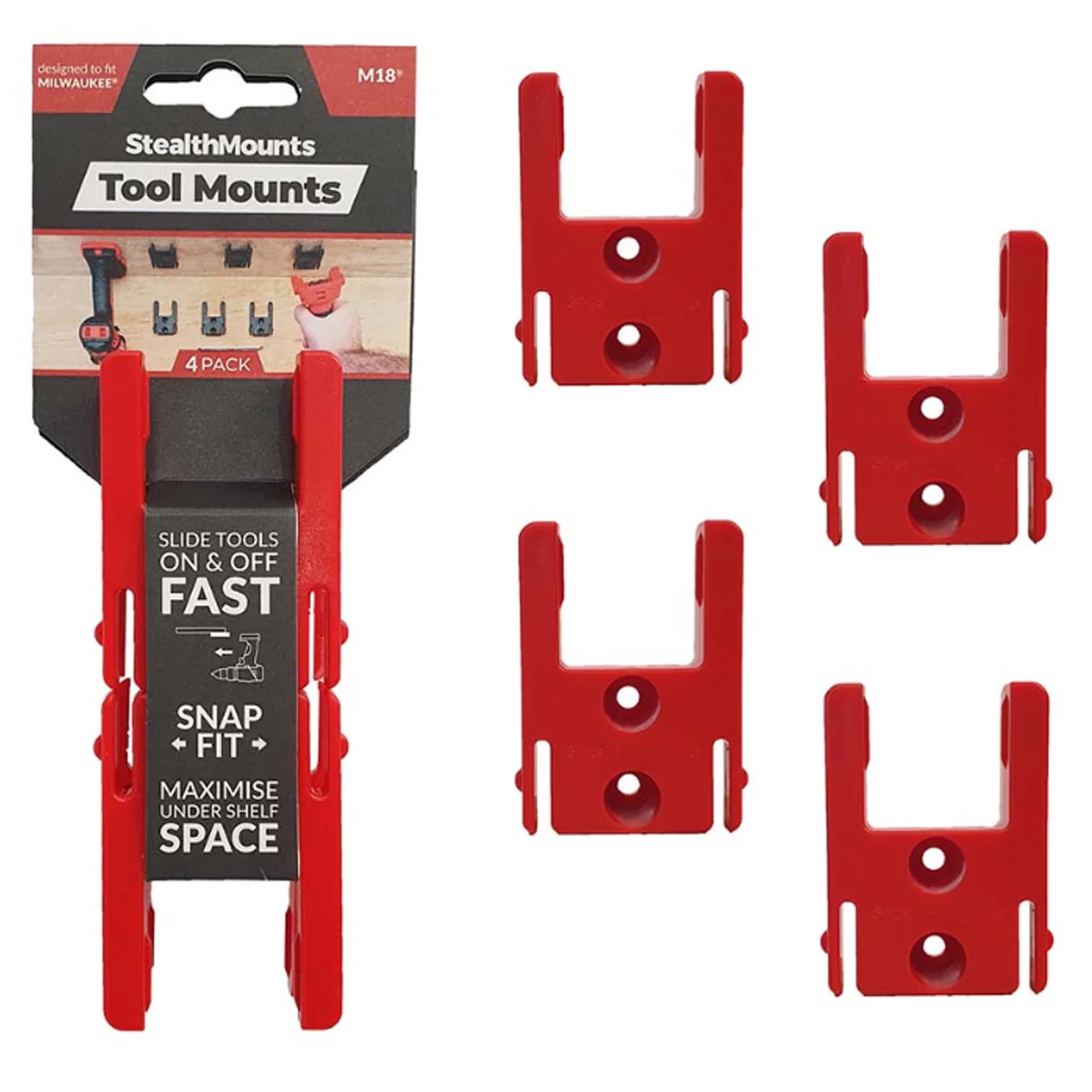 Stealthmounts TM-MW18-RED-4 Milwaukee RED 18v Tool Mounts 4pc