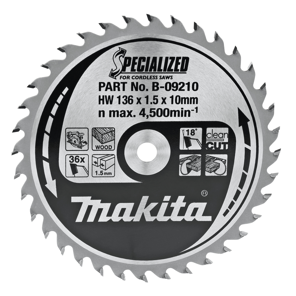 Makita Circular Saw Blade - TCT Wood - 136mm x 10mm x 36Th - B-09210