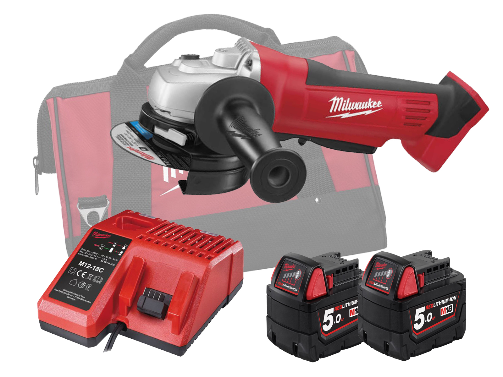 Milwaukee 18v Brushed 115mm Angle Grinder - HD18AG - 5.0Ah Pack