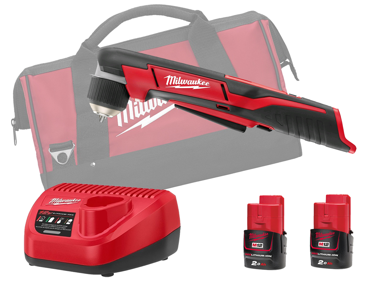 Milwaukee C12RAD 12V Sub Compact Right Angle Drill 10mm Chuck - 2.0Ah Pack