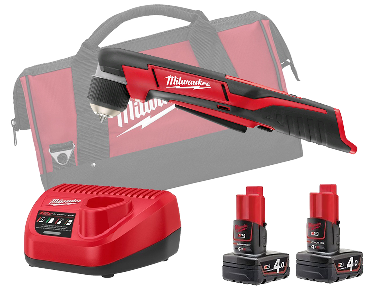 Milwaukee C12RAD 12V Sub Compact Right Angle Drill 10mm Chuck - 4.0Ah Pack