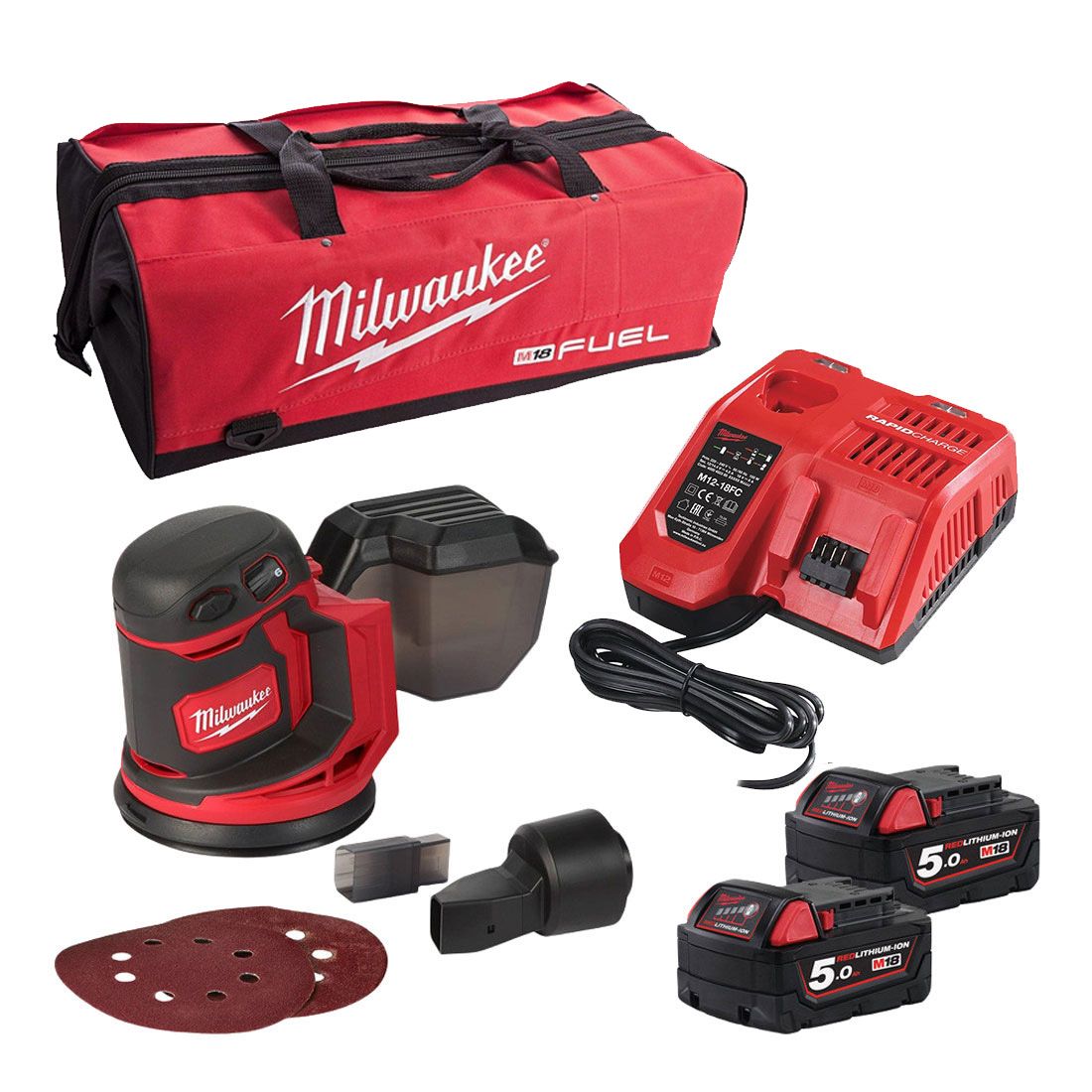 Milwaukee 18V Brushed 125mm Random Orbital Sander - M18BOS125-502B - 5.0Ah Pack