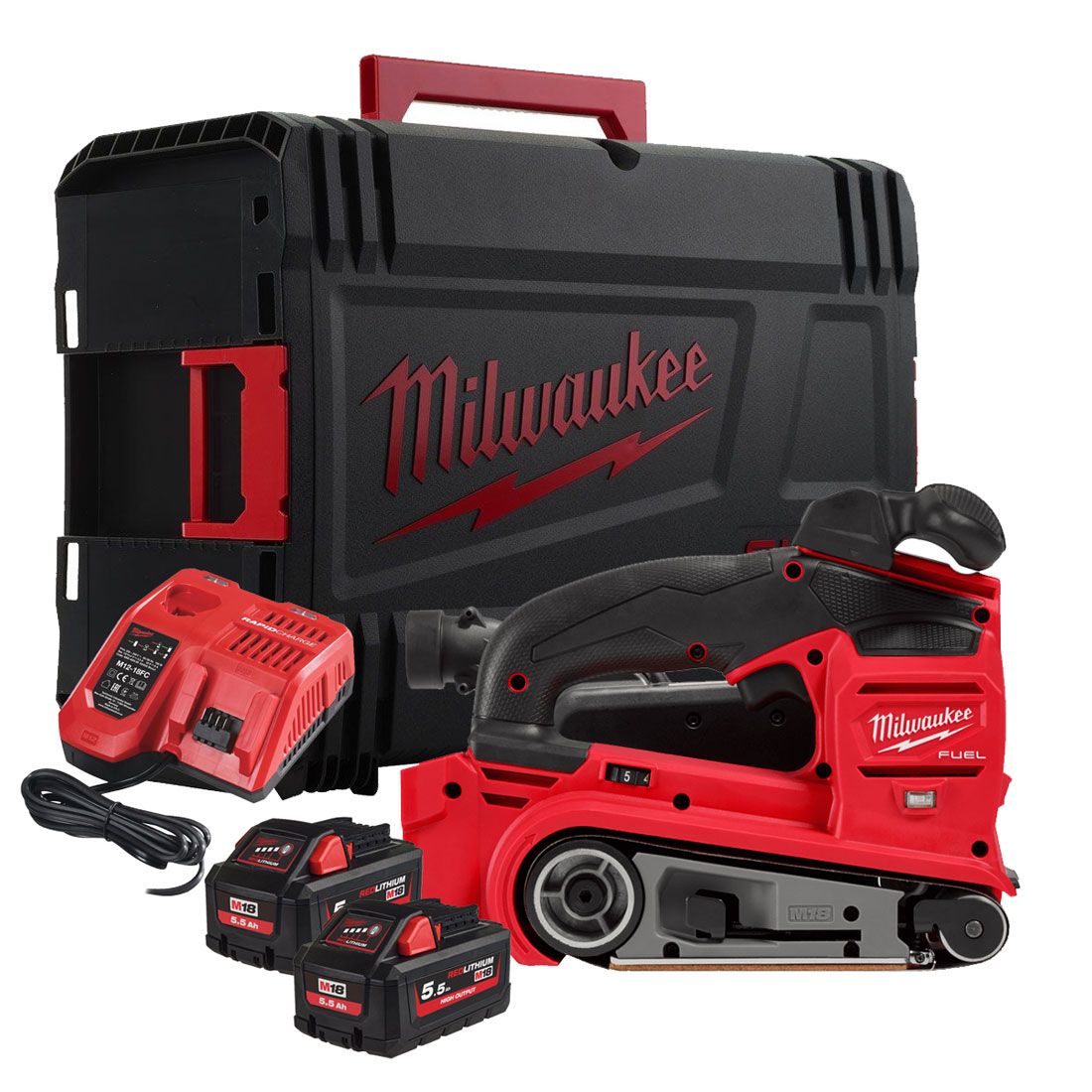 Milwaukee Fuel Brushless 75mm Belt Sander - M18FBTS75-552X - 5.5ah Pack
