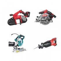 Cordless power tools including Drills, Angle Grinders, Multi-Tools, Circular Saws, Reciprocating Saws and Jigsaws. Brands include Milwaukee and Makita.