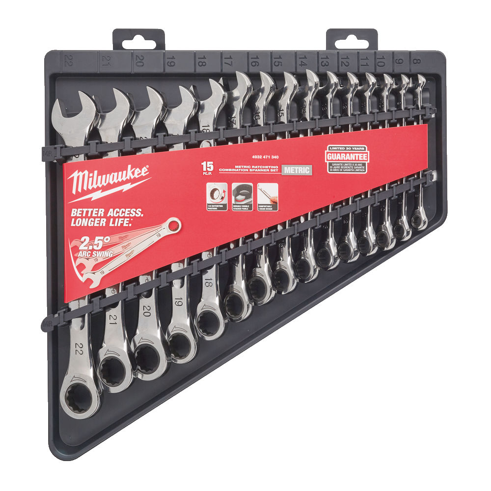 Milwaukee 4932471340 Metric Ratchet Spanner Set 15pc