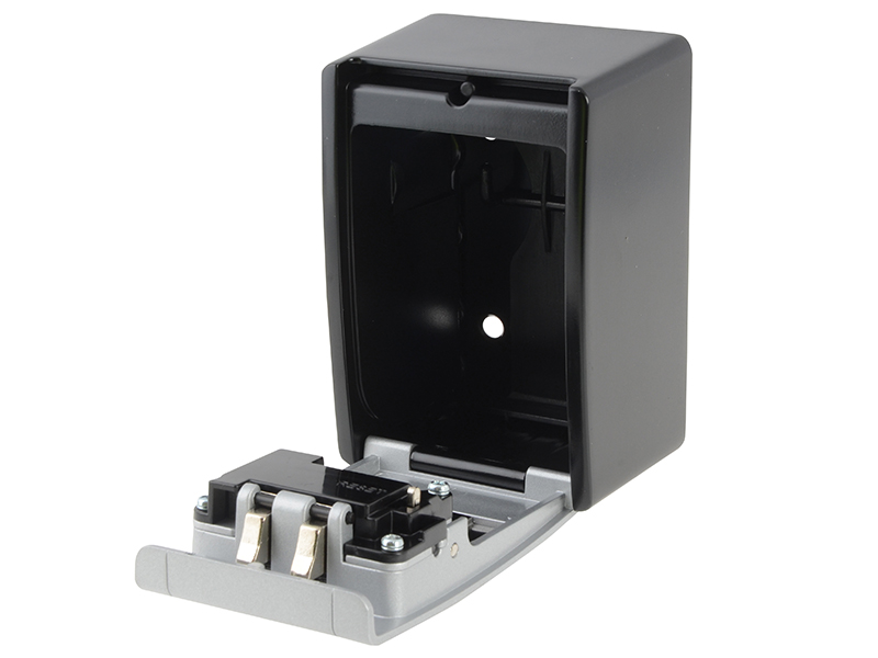 The Key Garage uses a wall fixing system, has a 4-digit individually resettable code, and a solid metal housing and cover which is made from a zinc die-cast. Suitable for use inside and outside, in protected areas for temporary storage of valuables or keys.