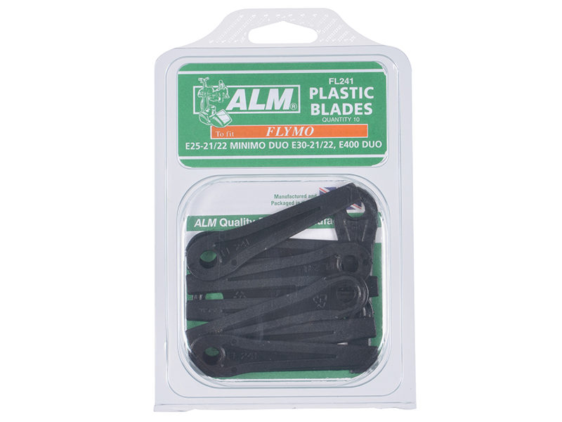 The ALM Manufacturing FL241 Plastic Blades (Small Hole) fit Flymo lawnmowers with retaining screw type fitting - duo models. Suits: Minimo E25, Minimo Duo E25-21, Minimo Duo E25-22, Minimo Duo E30-21, Minimo Duo E30-22, E400 Duo.