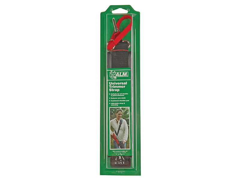 The ALM Manufacturing Universal Trimmer Shoulder Strap is a fabric made strap designed for use with grass trimmers to reduce arm strain or discomfort whilst trimming.