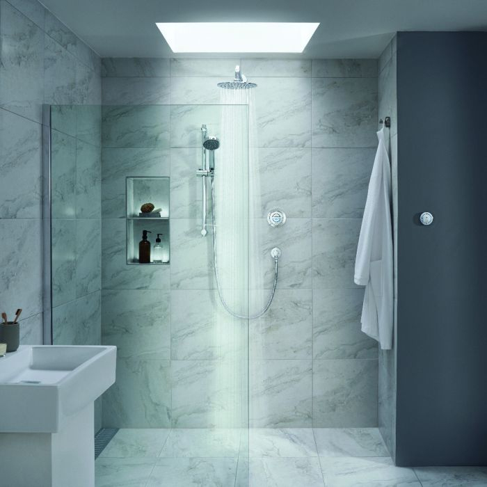 • Safe family showering with precise thermostatic temperature control and adjustable maximum temperature