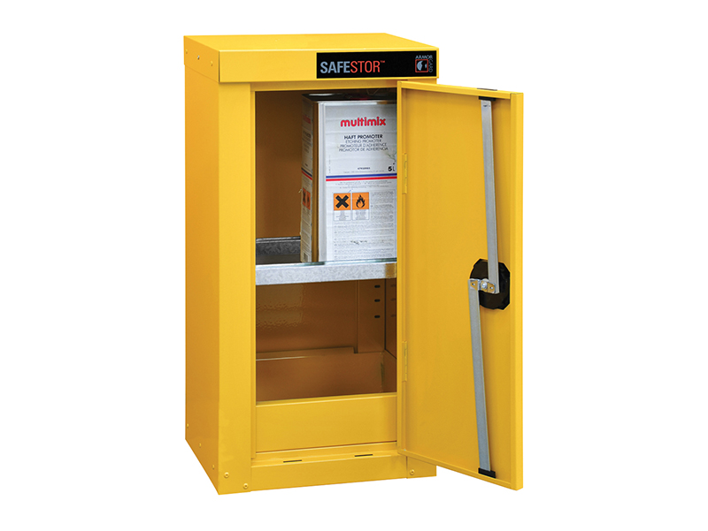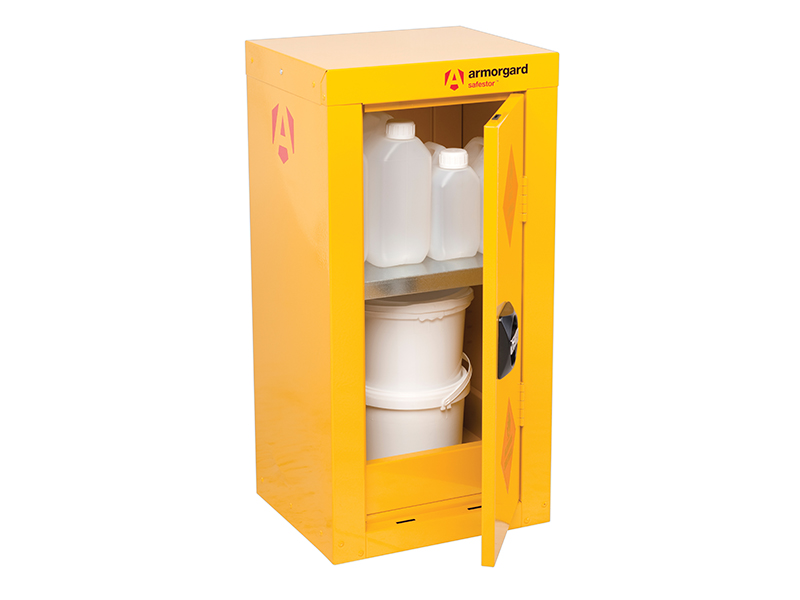 The Armorgard SafeStor™ Hazardous Floor Cupboard is designed to be used internally for the safe storage of flammables and chemicals, such as paint and other hazardous substances as defined by COSHH guidelines. Built to a 30 minute fire resistanc