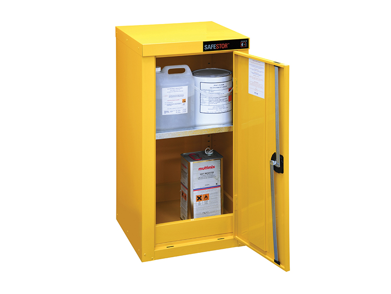 The Armorgard SafeStor™ Hazardous Floor Cupboard is designed to be used internally for the safe storage of flammables and chemicals, such as paint and other hazardous substances as defined by COSHH guidelines. Built to a 30 minute fire resistanc