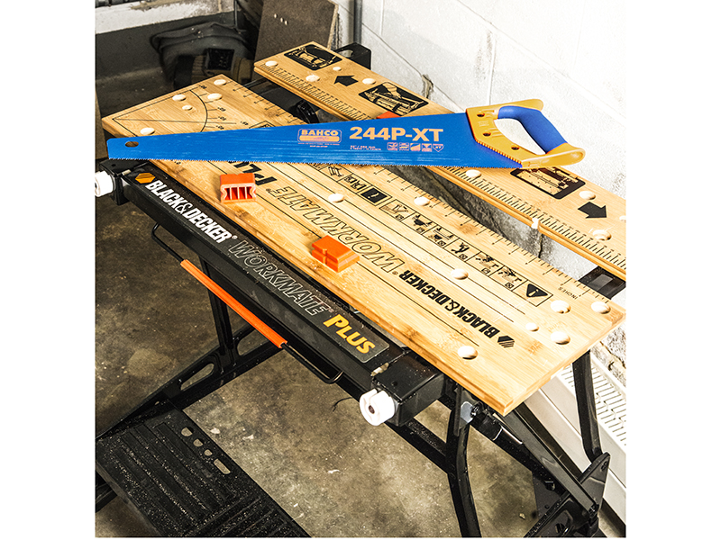 The Bahco 244P-22-XT Blue XT Handsaw is suitable for cutting coarse or thick wood materials. It has unique XT-toothing and hardpoint teeth for long-lasting sharpness. It has two sets of teeth that work in conjunction with each other, one set cuts and the second set clears with each stroke.