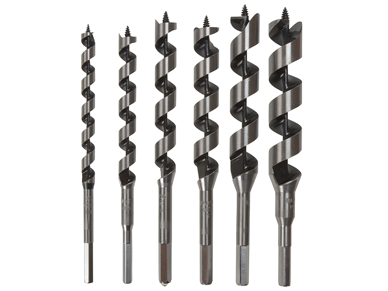Bahco 9526 Combination Auger Bit Set, contains 6 of the most popular sizes. These are dual-purpose and can be used in both electric power drills and hand braces. With a single cutting edge for easy regrinding, though the need for regrinding is reduced as it is made from hardened tool steel for a longer cutting life.