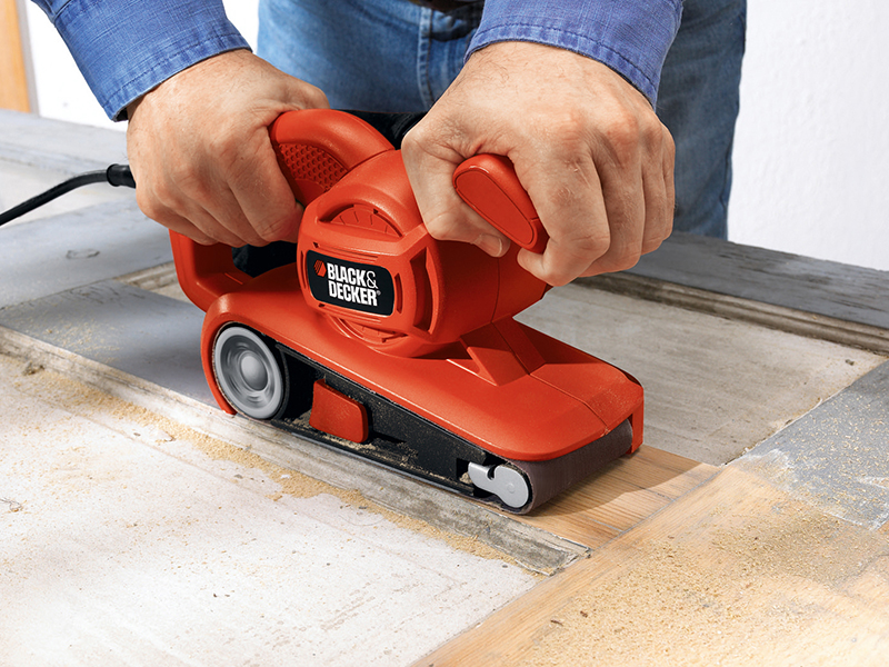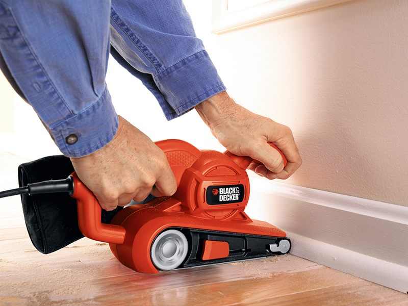 BLACK + DECKER KA86 Belt Sander has an angled belt design enables you to sand 2 times closer to the edge of adjoining surfaces than normally. The powerful 720 Watt motor makes this ideal for sanding floor boards, decking and other large surfaces which require greater stock removal.