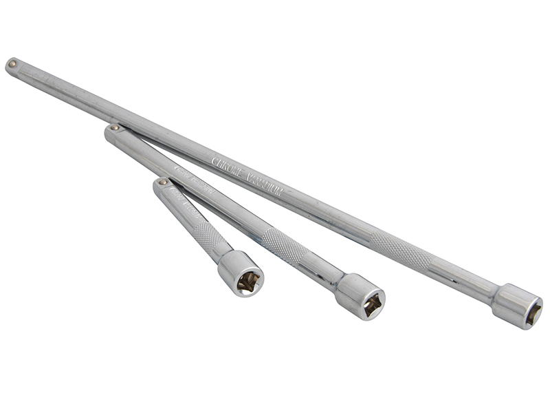 Set of 3 Blue Spot 1/4in drive extension bars made from chrome vanadium steel which is heat treated for strength and durability.