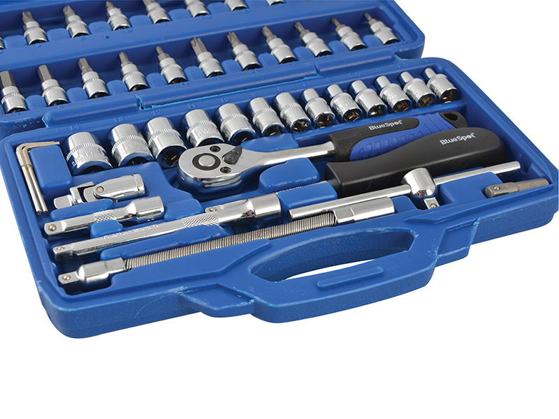 This BlueSpot 46 piece socket set contains a variety of useful sockets which are supplied in a blow mould case for handy storage.