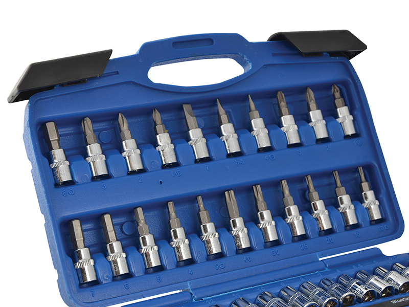 BlueSpot Tools 1/4in Square Drive Socket & Bit Set, 46 Piece B/S01530
