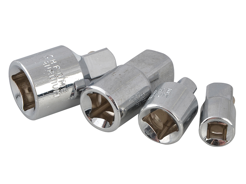 This Blue Spot adaptor set contains 4 adaptors, each manufactured from chrome vanadium, hardened and tempered for durability. They have spring loaded ball bearings to hold sockets securely.