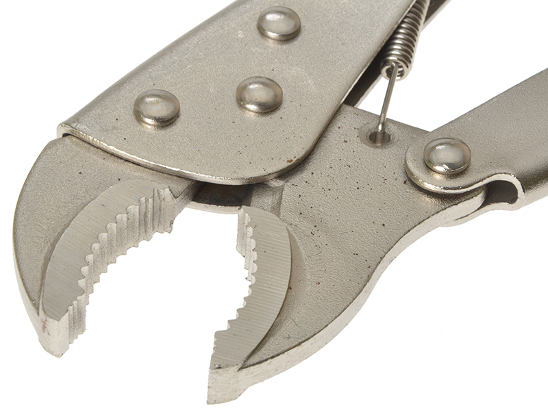 The BlueSpot 06524 curved Locking Plier's are ideal for pipes, fittings, nuts, and bolts. Manufactured from nickel-plated steel for increased durability, and features powerful self-locking jaws, adjustable jaw opening and quick release.