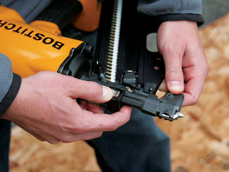 The Bostitch F21PL-E Roundhead & MCN Stick Nailer has a waisted body design to improve sightline and a repositioned handle to give balance and comfort in use. Using 21° plastic collated framing nails hot dip galvanized to 50 microns and specially designed positive placement nails.
