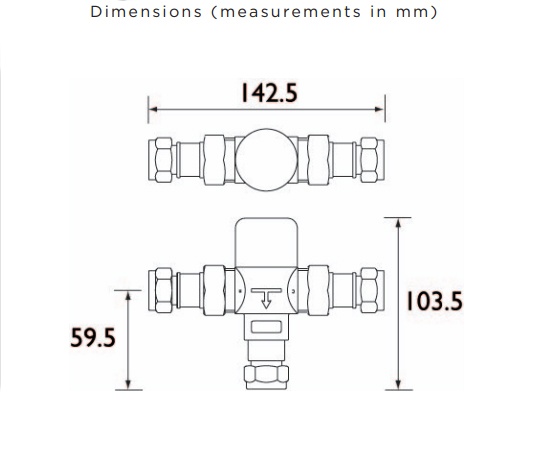 Bristan 15mm TMV3 Thermostatic under sink blending valve with 15mm inlet connections.