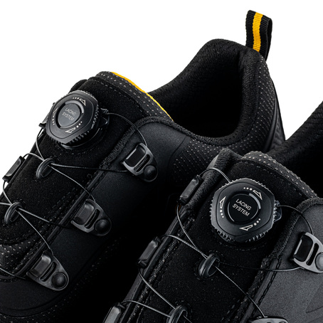 Play FAST and LOOSE with lacing.  Wheelz introduces the Fitgo wheel and cable lacing system bringing a quick and convenient fasten and loosen to safety footwear lacing. A boon to trades safety footwear users who require to quickly remove and re-fit thier footwear. The Fitgo system is tested to over 40kg weight pressure and Wheelz comes in a choice of athleisure dynamically styled mid boot and trainer styles.  Thanks to incorporating the latest high strength, low weight materials and components Wheelz are not just lightweight they are ultra light weight but strong enouygh to surpass a 500k intense flex test.  A user friendly combination of great looks, light weight and Fitgo convenience masks really tough and durable workplace fottwear with a high CE/UKCA safety specification: S1 PS SC FO + ESD.