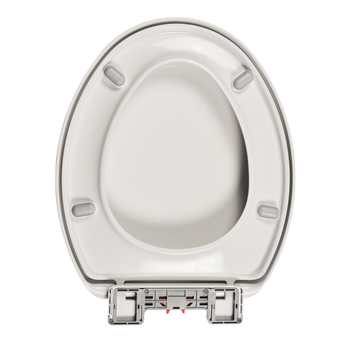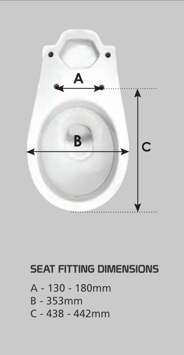 Universal Soft Close Seat with quick release top fix hinges. Fits most standard shape pans.