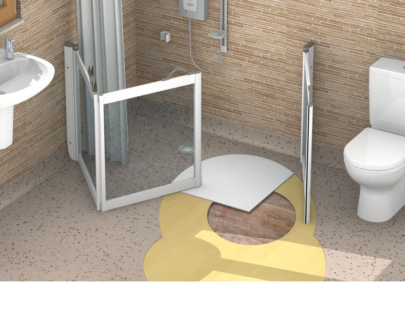 Creates a complete level access witroom shower area concealed beneath the vinyl or tiled flooring once installed.