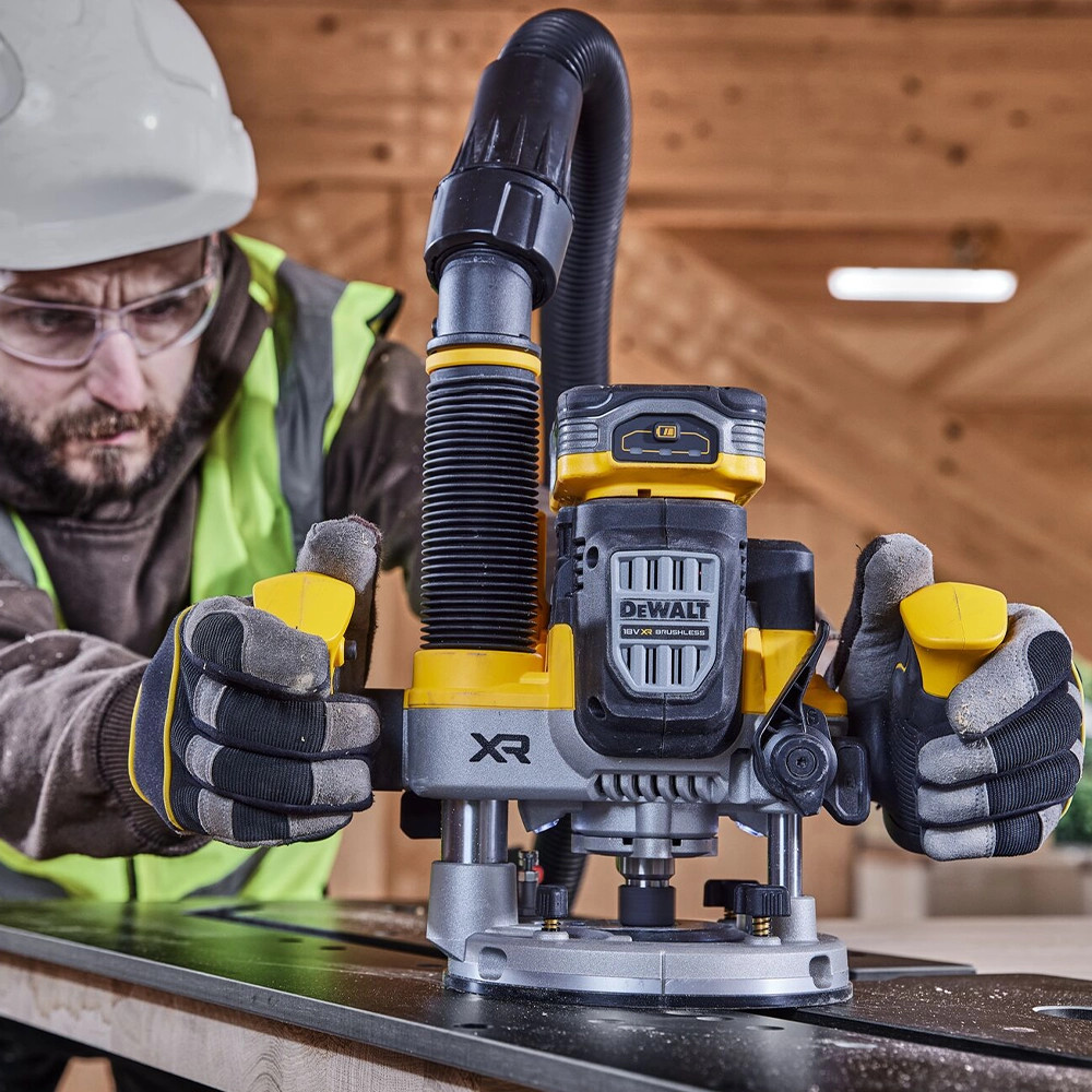For greater flexibility, the Dewalt DCW620H2 router is compatible with 12mm, , 8mm, and collets. For healthy working, the router also features an integrated and notably enhanced dust extraction port that can be connected up to an external dust extractor. Dust and debris flow through the router to an AirLock compatiable port for incredible cleaning effect. This not only maintains a healthy and clean working environment, but also removes debris from the cutting site ensuring you maintain a clear line of sight.