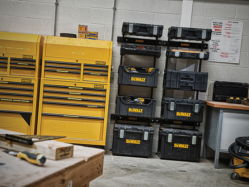 The DEWALT DWST1-75694 TOUGHSYSTEM Workshop Racking fits all TOUGHSYSTEM modules.
