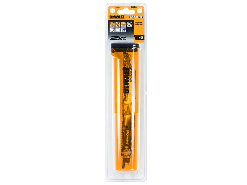 The DEWALT DT2440L 2X Life Reciprocating Saw Blade Set contains a mixture of blade types for a wide range of cutting jobs. Bi-Metal construction; combining an HCS body with HSS teeth. With optimised tooth geometry for fast effective cutting with increased cobalt content for longer cutting life. The ToughCoat heat resistant coating prevents heat build up to maximise blade life.