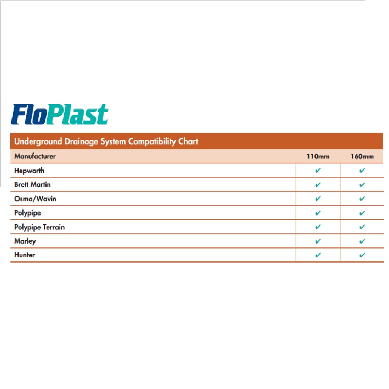 • Floplast underground range includes a variety of gullies and traps to suit most installations and integrate with Floplast's above and below ground drainage system.