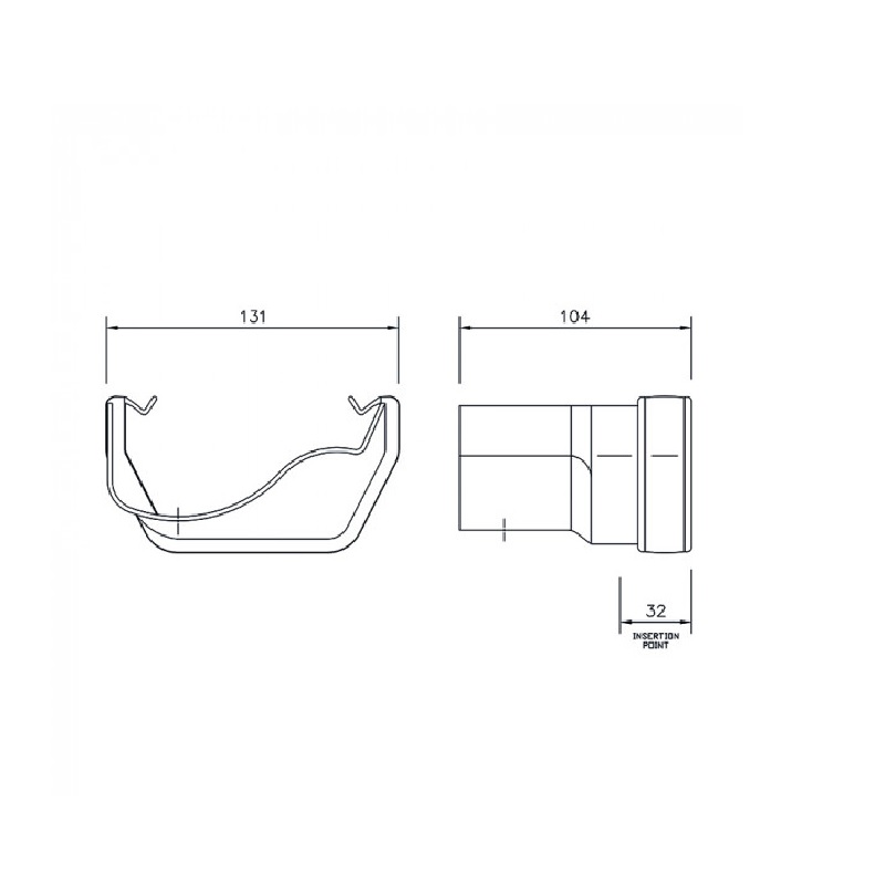 Converts 114mm Square Line Gutter to Cast Iron Ogee Gutter.