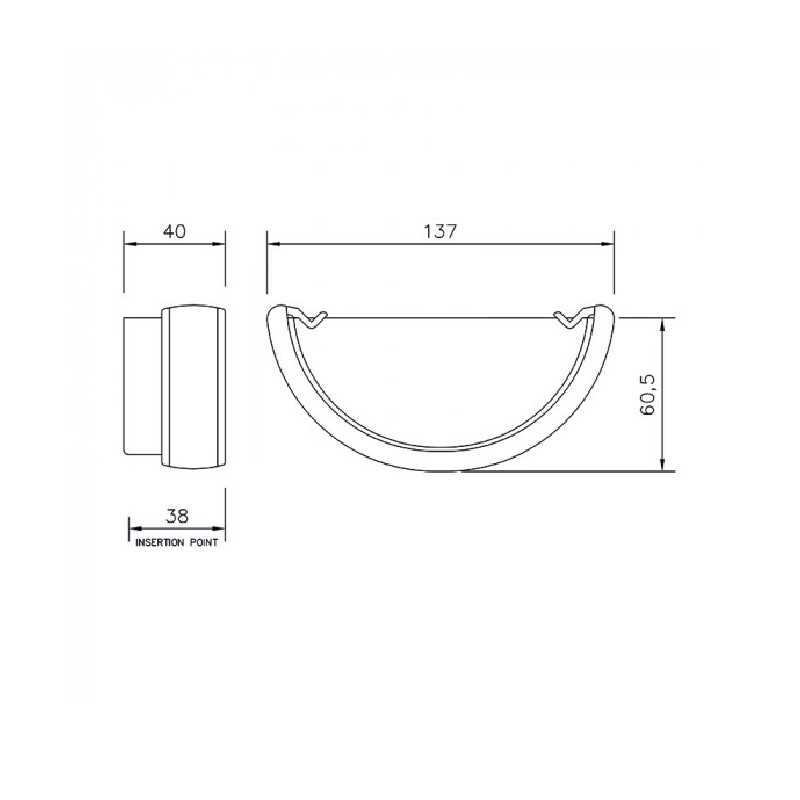 Floplast RE1 Half Round Gutter 112mm Rainwater System - External Stopend - Grey