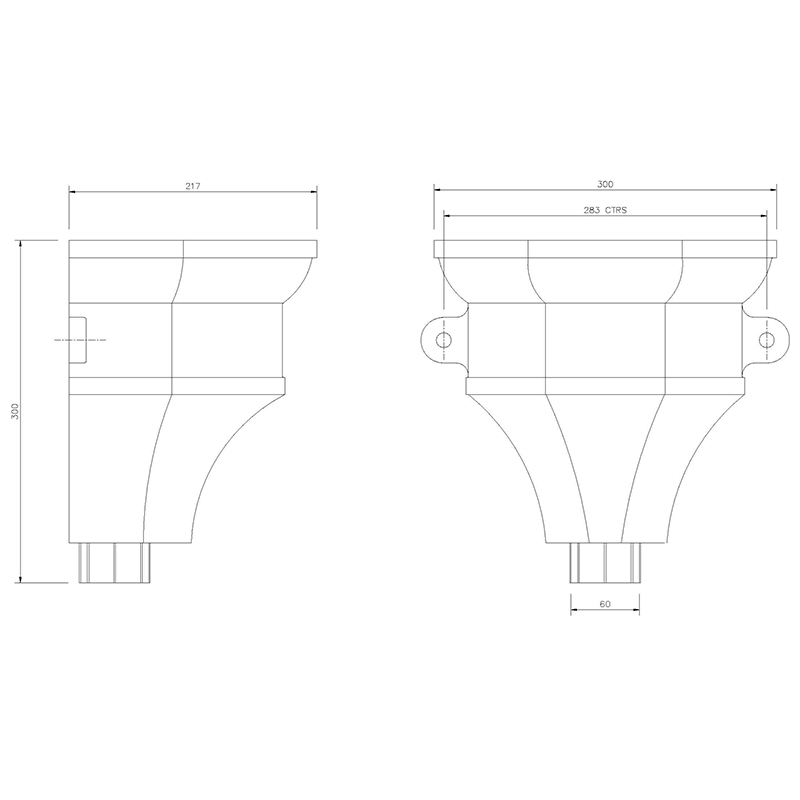 Floplast RH4CI 68mm Round / 65mm Square Downpipe - Ogee Hopper - Faux Cast Iron