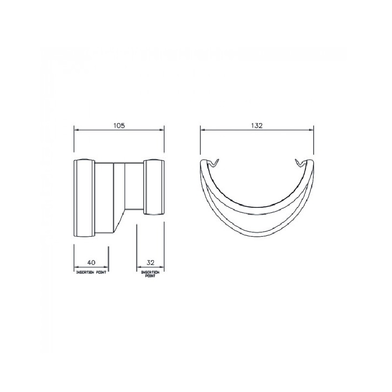 • Adapts from FloPlast Hi-Cap (deepflow) guttering to half-round classic guttering.