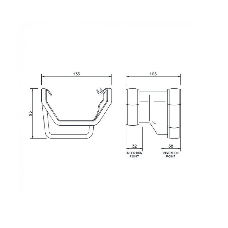 Floplast RNS4 Niagara to Square Line Gutter Adaptor - Left Hand - Black