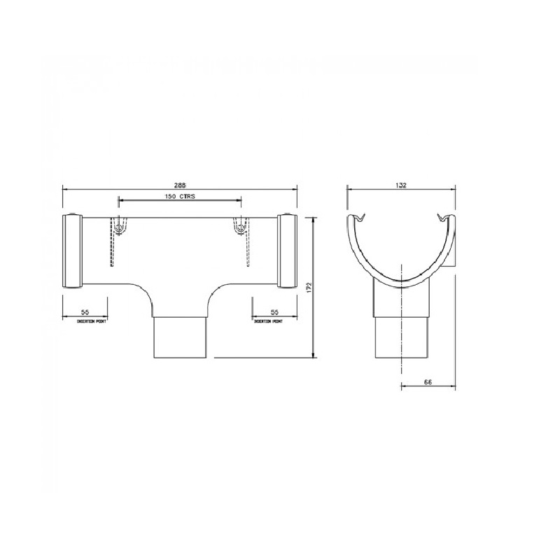 Floplast ROH1 Hi-Cap (Deepflow) 115mm Rainwater System - Running Outlet (Suitable for 68mm Downpipe) - Grey