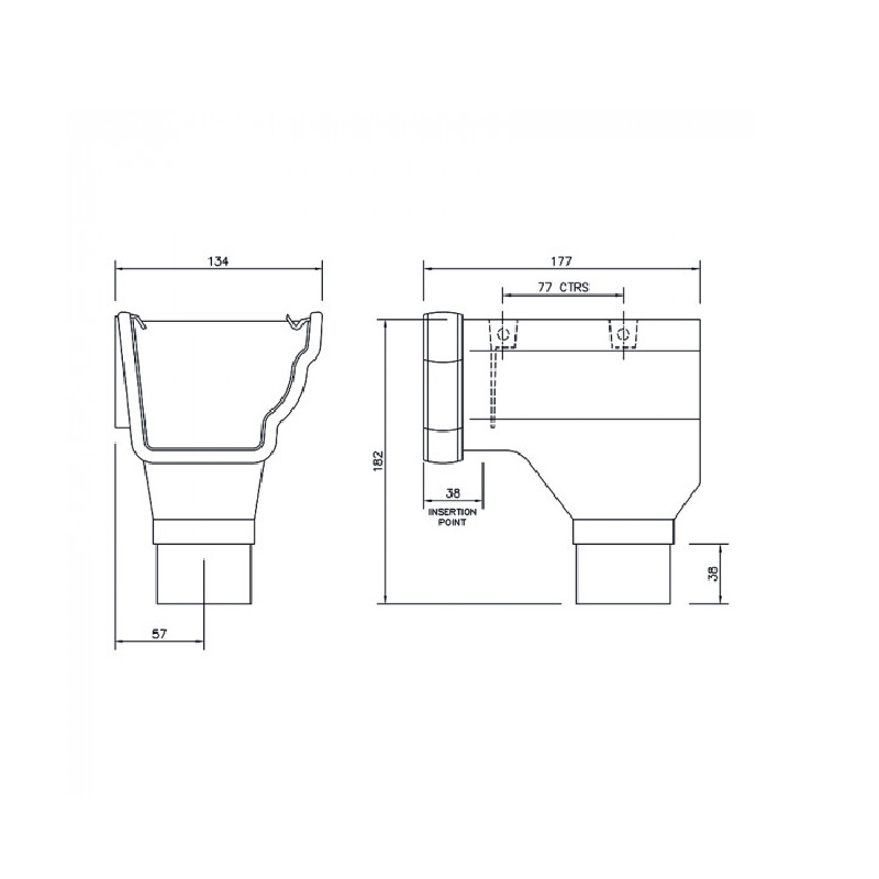 • Outlet connects to Square Line or Round Line downpipes.
