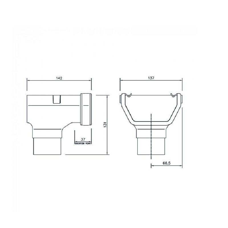Floplast ROS2 114mm Square Line Gutter - Stopend Outlet - Brown