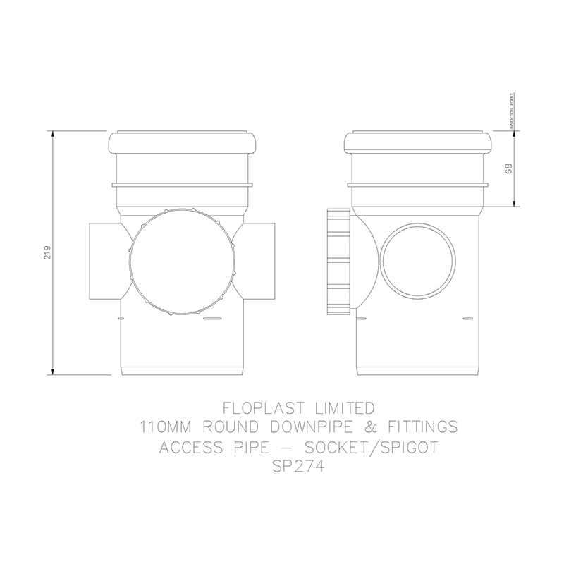 Floplast SP274WH 110mm/4 Inch Ring Seal Soil System - Access Pipe Single Socket - White